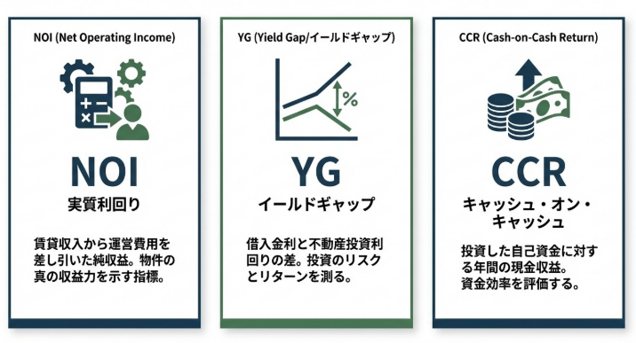 表面利回りではなく、実質利回りやイールドギャップ、CCRを使って判断できる。