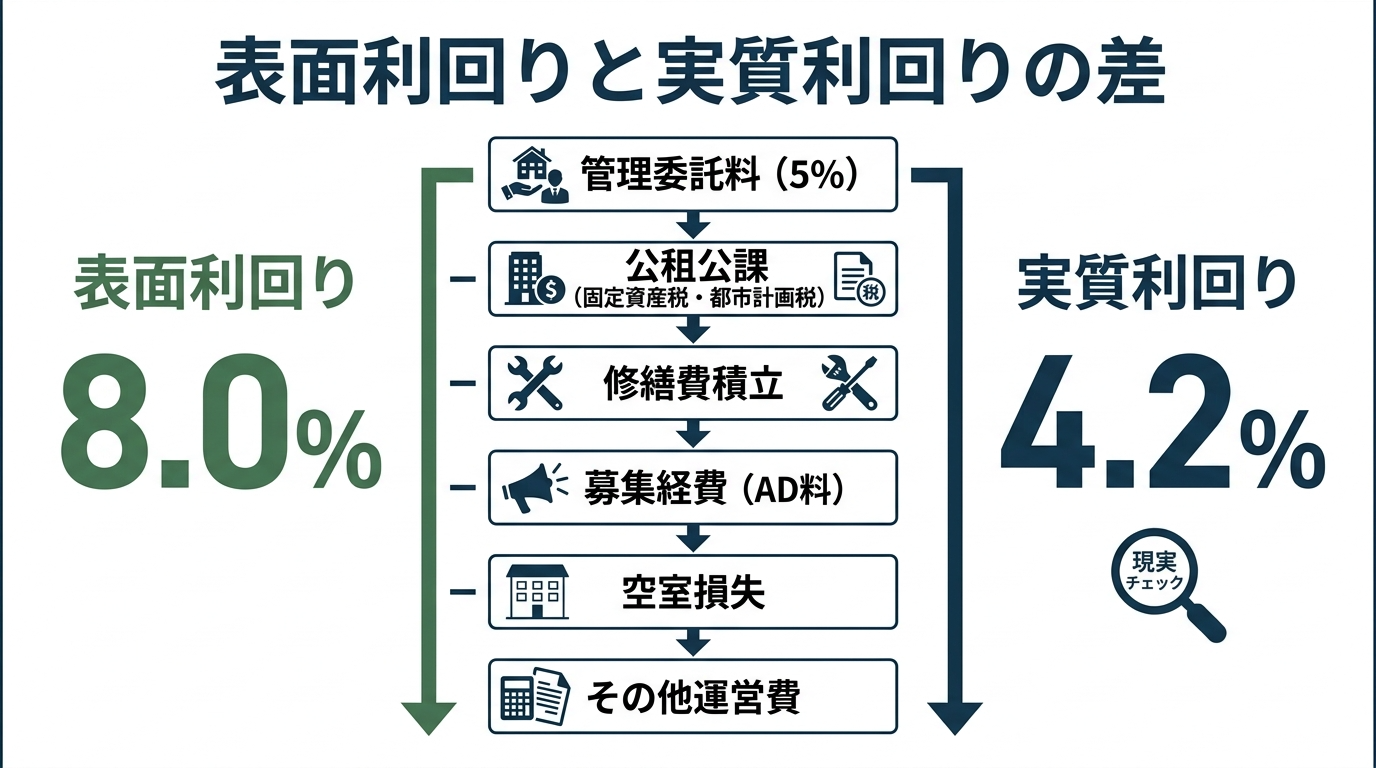 利回りを狂わせるのは、大きな失敗ひとつではなく、見えにくいコストの積み上がりだからです。