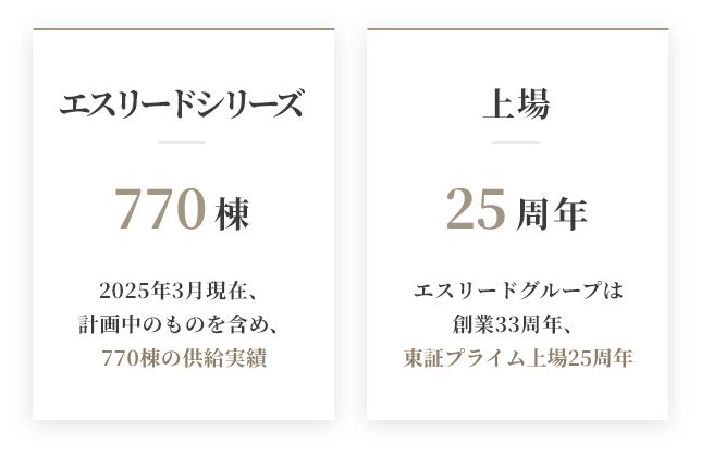 エスリードグループは1992年の創業以来、関西圏を中心に新築分譲マンション「エスリード」シリーズを展開し、これまでに累計62,000戸を超える住宅を供給してきた総合不動産デベロッパーです。