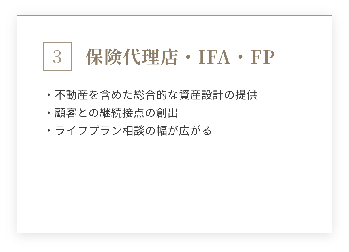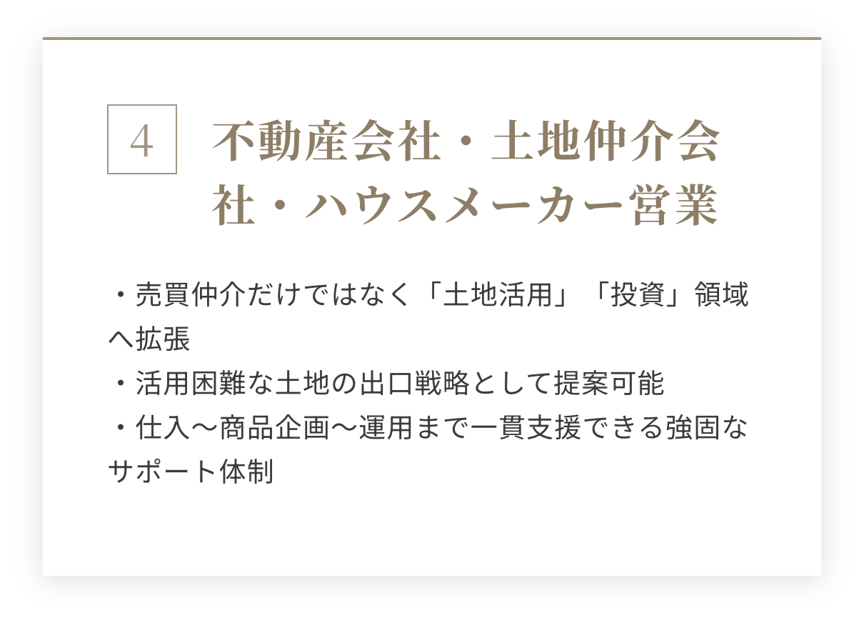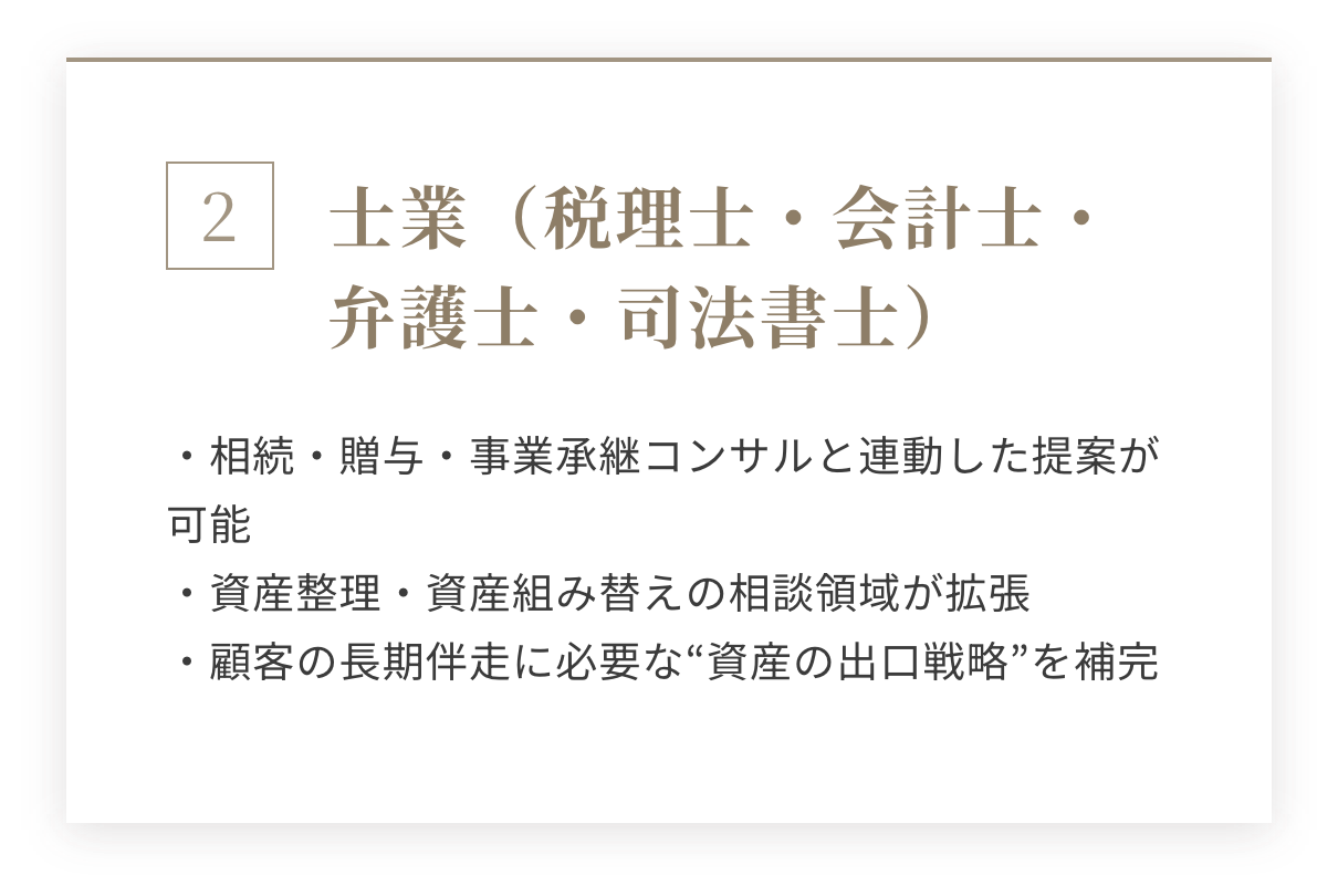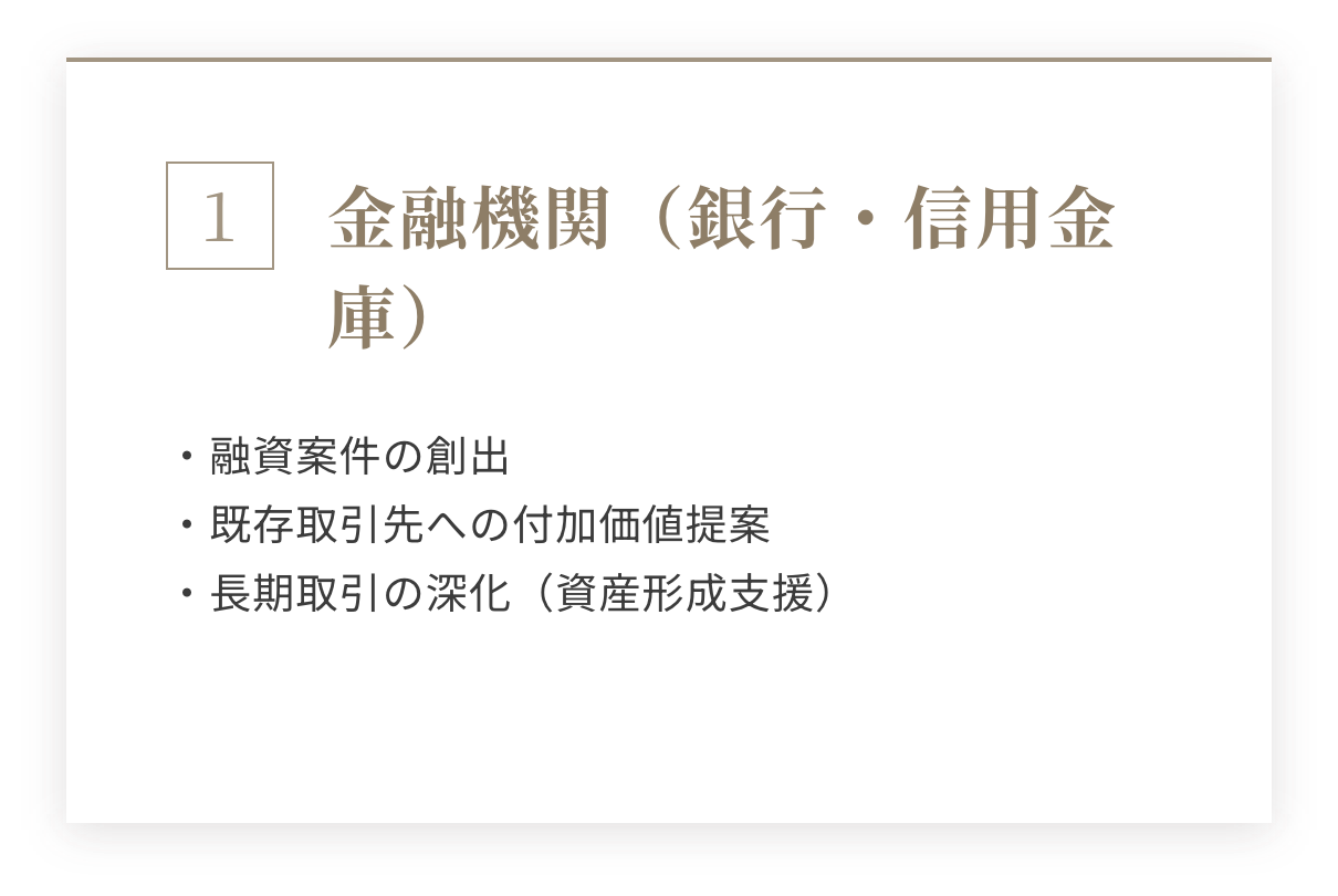- 不動産投資・資産運用に関心を持つ個人顧客
