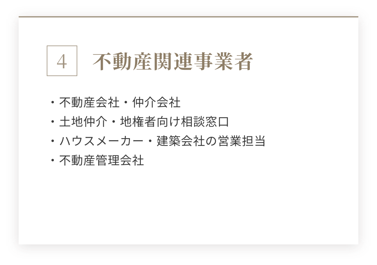 - 相続を控えた土地オーナー様(単独・共有名義問わず)