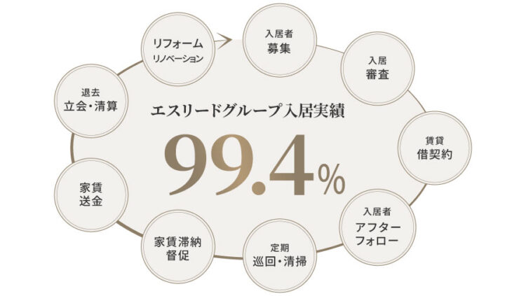 エスリードグループは、1992年の創業以来、関西を中心に分譲マンション「エスリードシリーズ」を累計62,000戸以上供給してきました。2000年には東証への上場を果たし、30年以上にわたって安定した住まいづくりを継続しています。土地の仕入れから設計・施工、販売、入居後の管理までをグループ内で一貫して担う体制を構築しており、品質管理と業務連携の精度の高さは、アパート事業にも引き継がれています。投資用であっても、住宅としての基本性能と、将来にわたる運用のしやすさに配慮した商品設計を行うことで、オーナー様にとっての“安心して任せられる体制”を築いています。