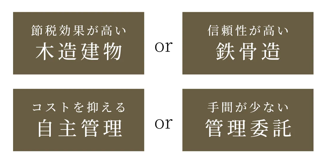 オーナー様ごとの投資スタイルに応える多彩な選択肢